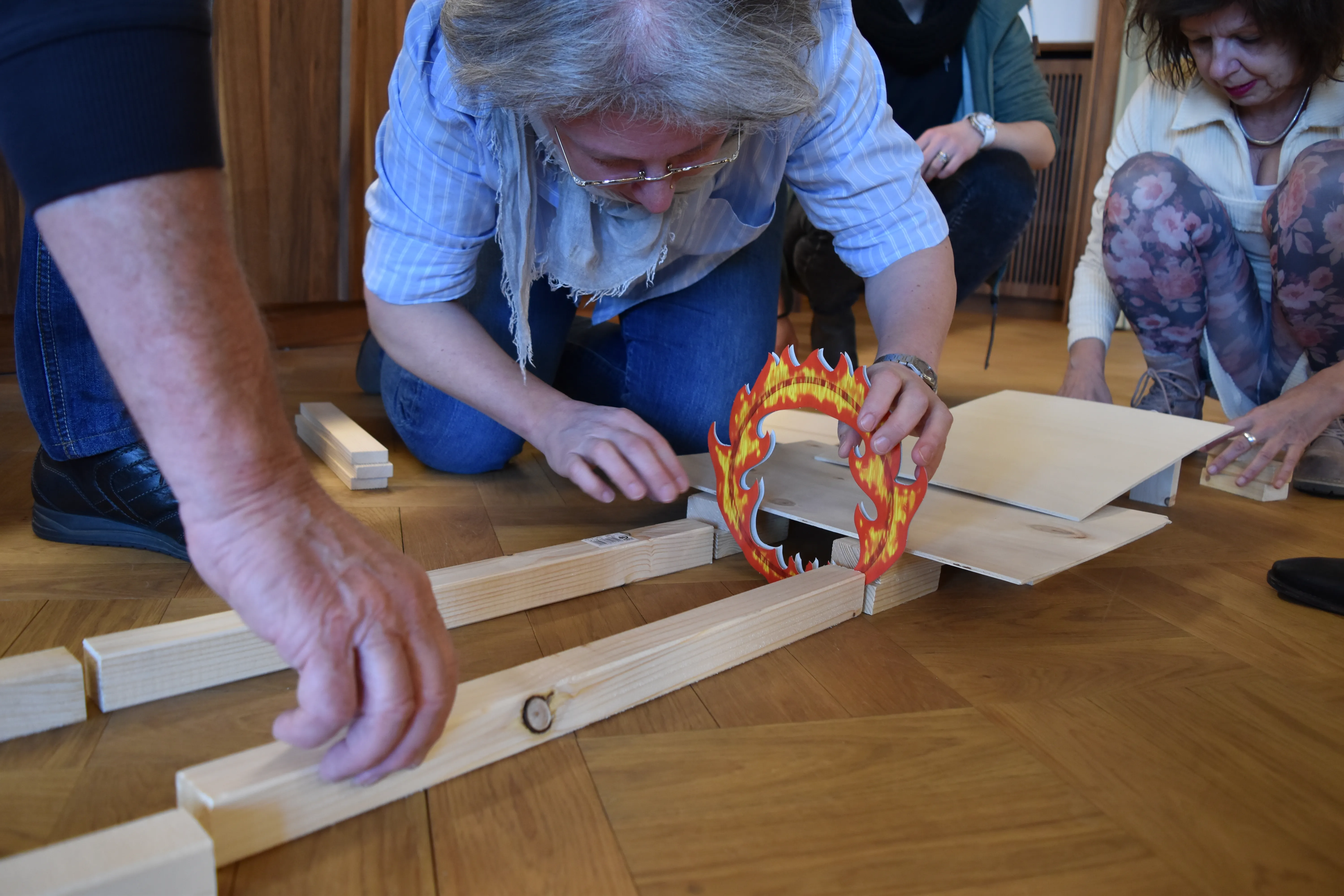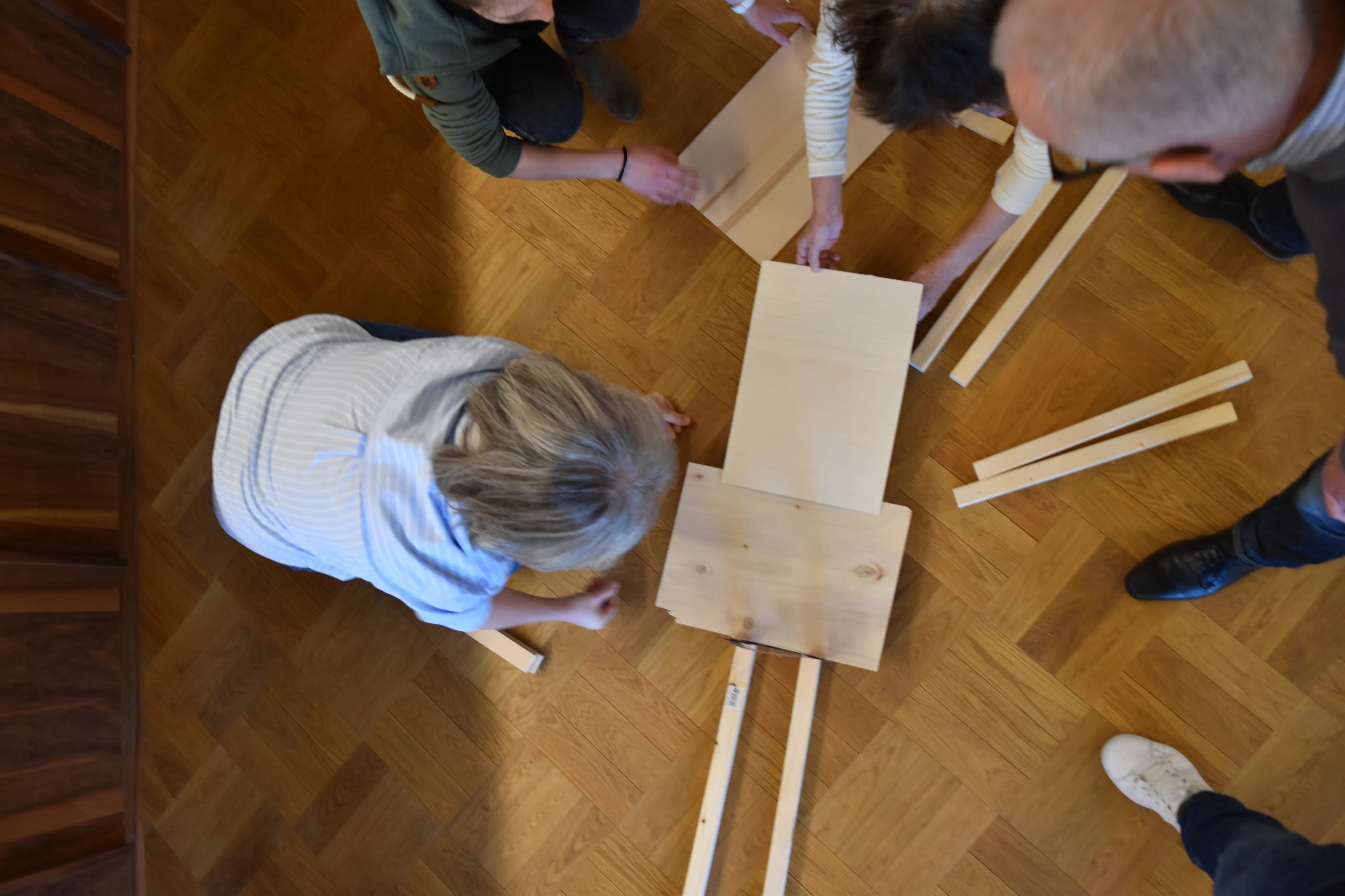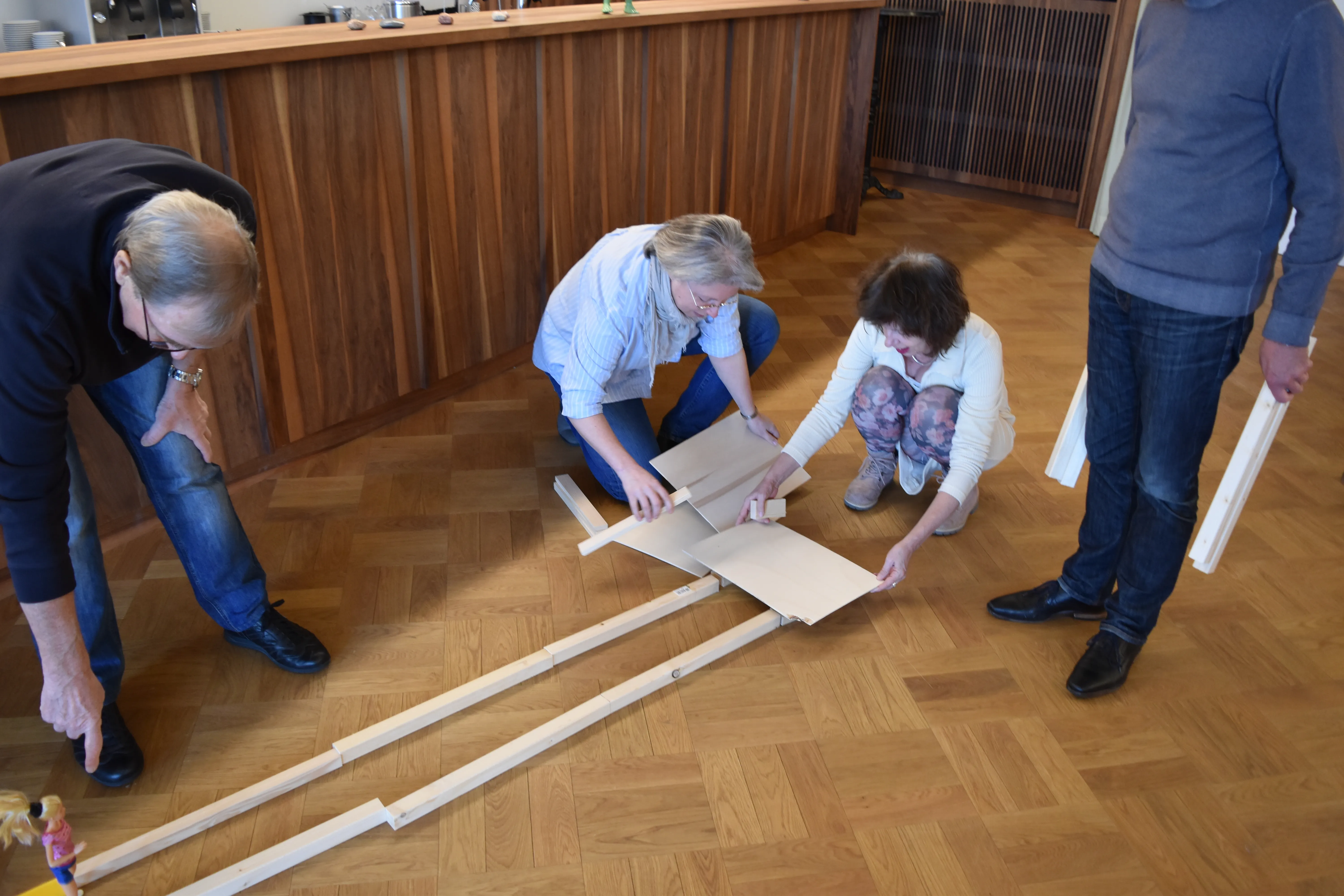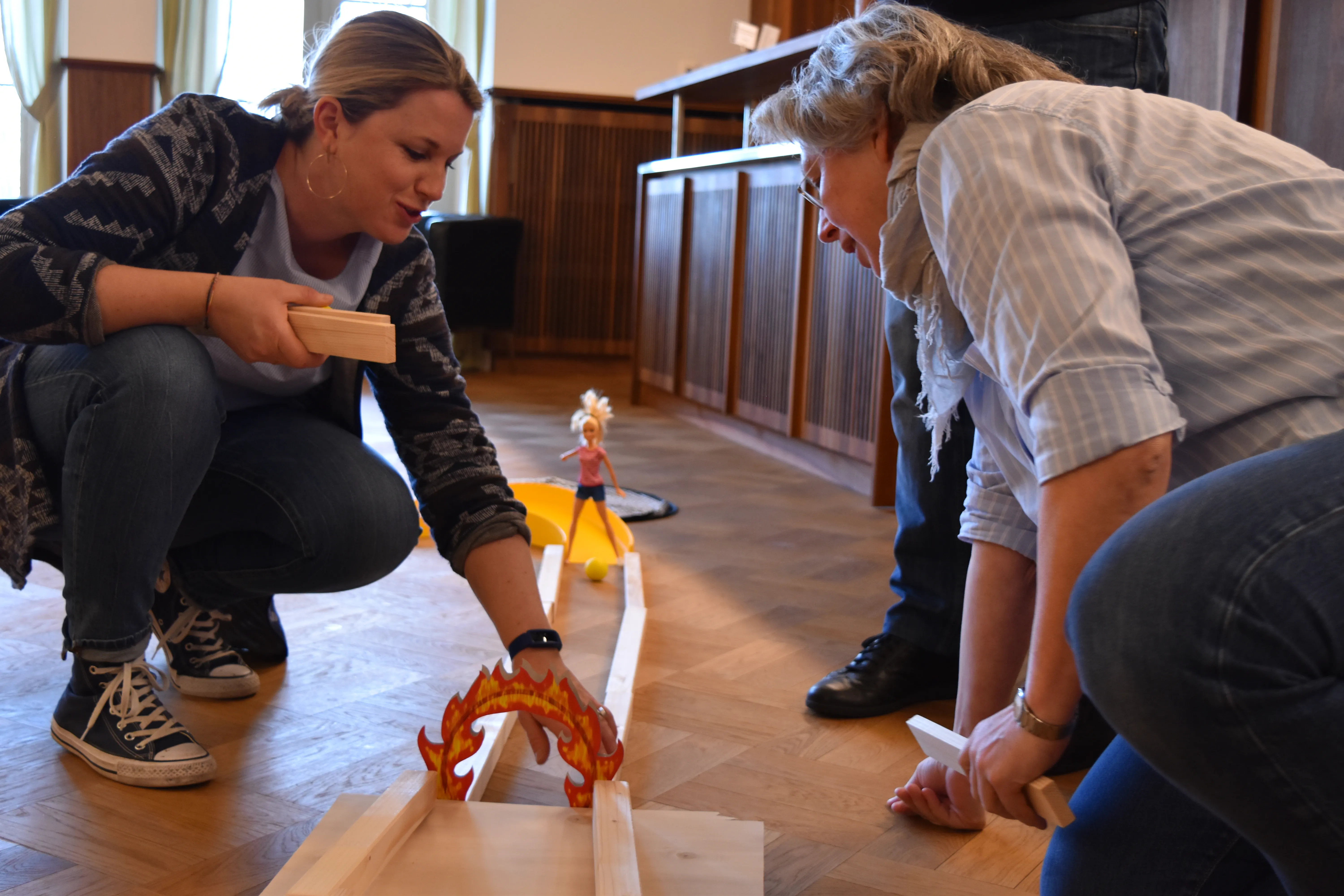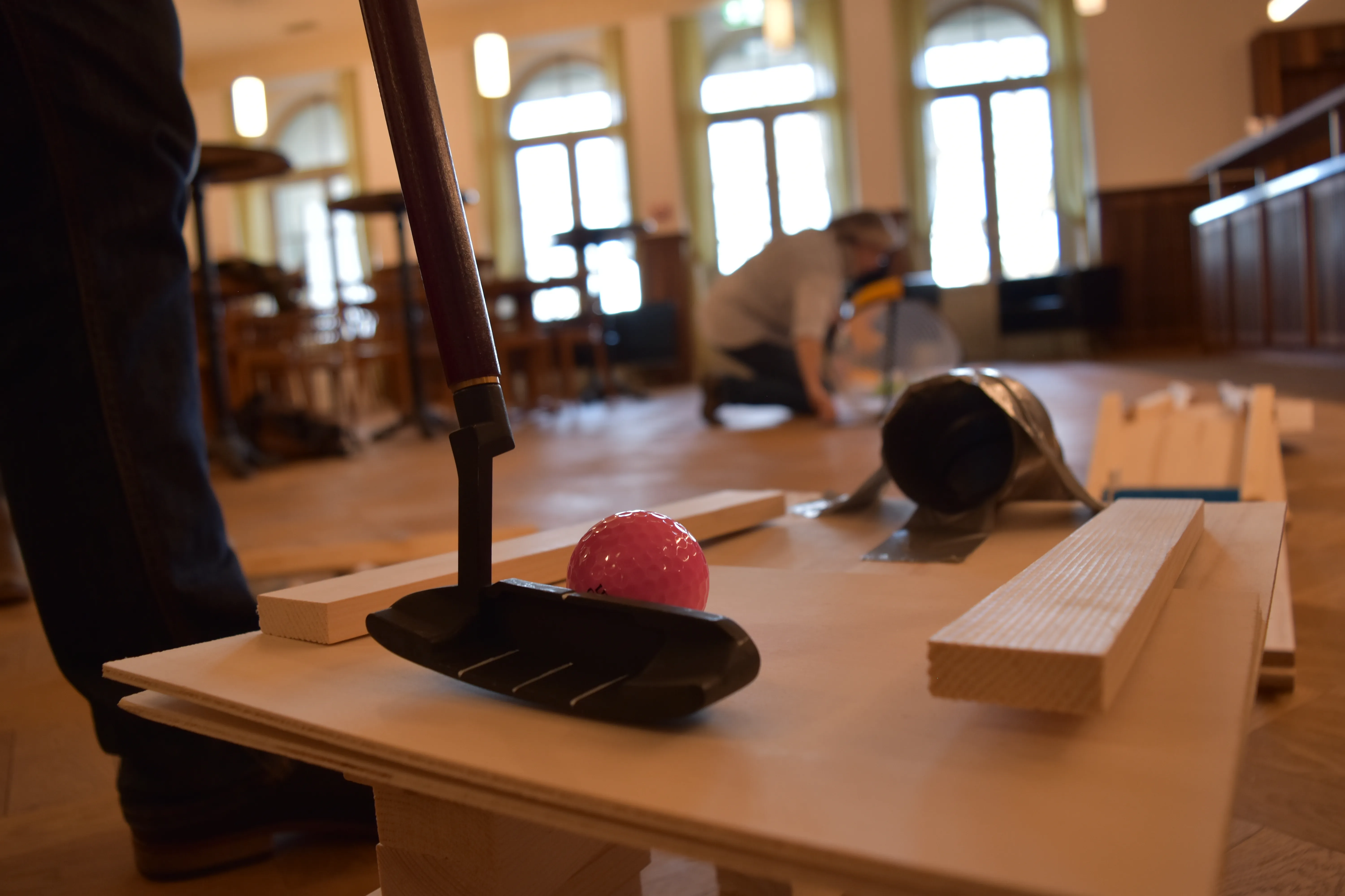 Am Anfang des Events wird Ihr Team in kleinere Gruppen aufgeteilt. Nun erhält jede Gruppe die Aufgabe, aus dem bereitstehenden Material eine eigene Minigolfbahn zu bauen.